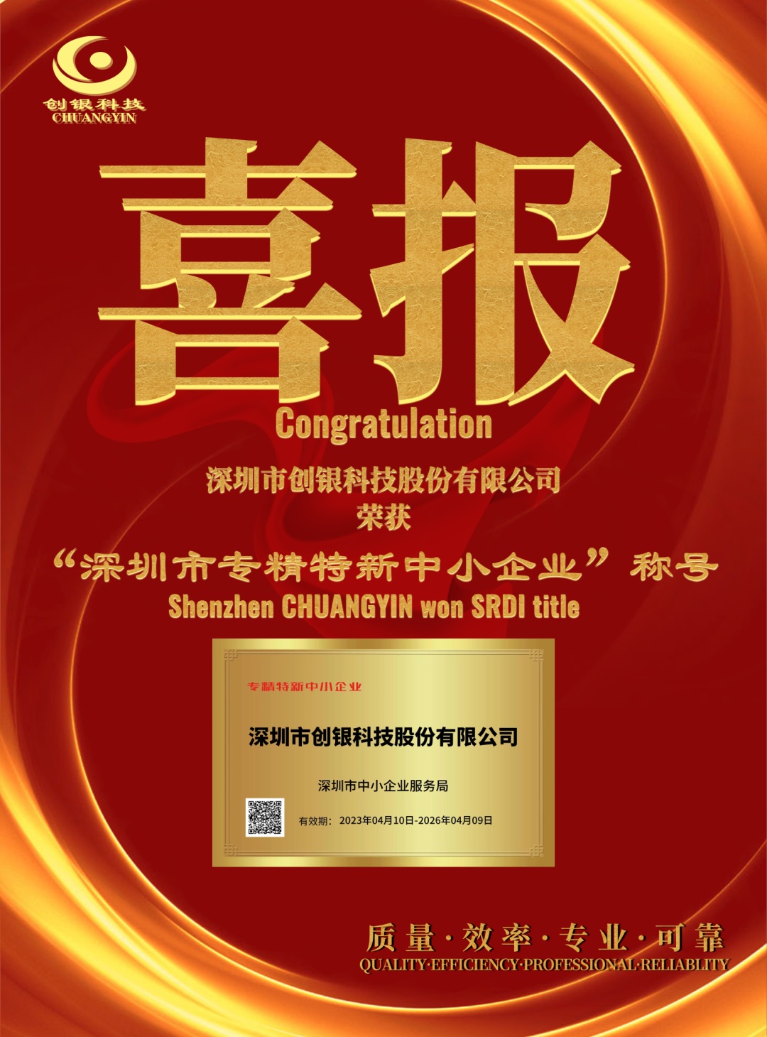 【喜報(bào)】熱烈祝賀深圳創(chuàng)銀科技榮獲“深圳市專(zhuān)精特新中小企業(yè)”稱(chēng)號(hào)
