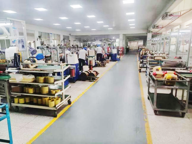 另外,為創(chuàng)造了更舒適的工作環(huán)境,工廠同時(shí)對(duì)中壓車間的前段繞線車間的鏤空區(qū)域做吊頂處理并在各個(gè)關(guān)鍵區(qū)域安裝了七臺(tái)大功率工程空調(diào),將合理有效地在不同時(shí)節(jié)調(diào)節(jié)車間內(nèi)亮度、溫度和濕度,無論炎熱的夏季還是寒冷的冬季都能讓員工們?cè)诮】淡h(huán)境中工作。