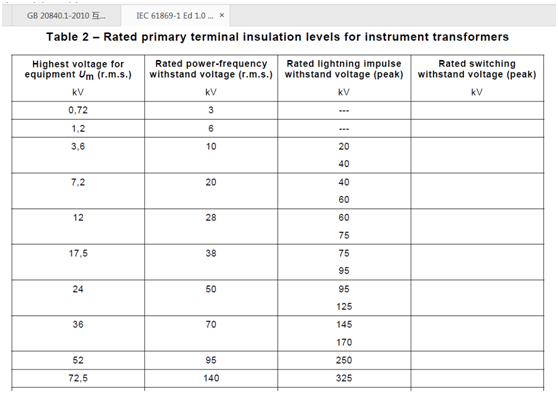 關(guān)于互感器GB和IEC標(biāo)準(zhǔn)中規(guī)定的設(shè)備最高電壓Um的比較