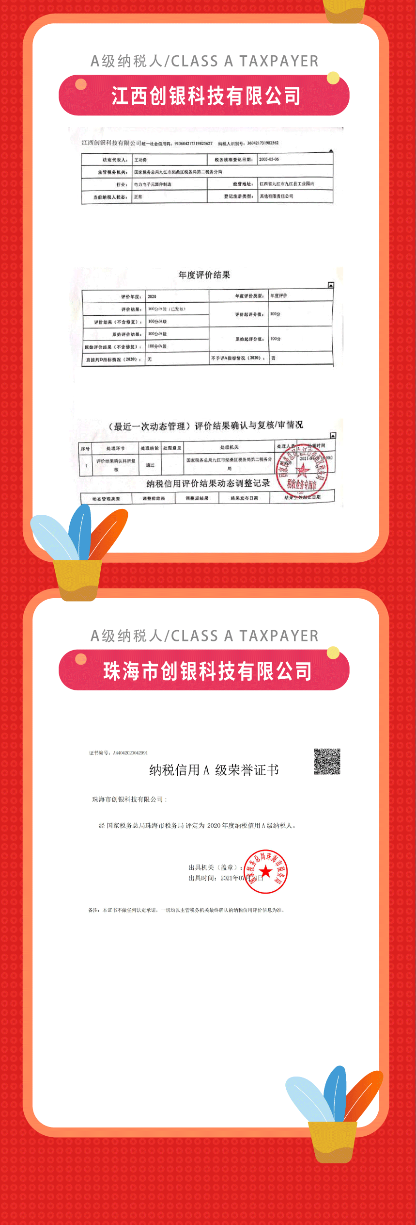 近日,創(chuàng)銀科技再傳喜訊,繼珠海創(chuàng)銀獲得A級(jí)納稅人稱號(hào)后,深圳創(chuàng)銀、江西創(chuàng)銀相繼也獲得A級(jí)納稅人稱號(hào)。