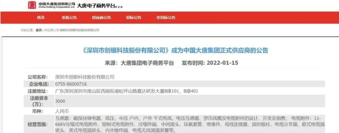 【喜訊】熱烈祝賀深圳創(chuàng)銀成為中國(guó)大唐集團(tuán)正式供應(yīng)商!