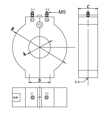 P1,P2 primary terminals,S1,S2 secondary terminals