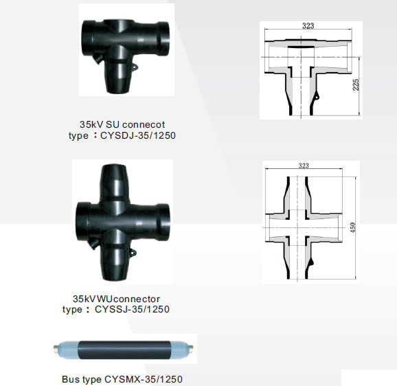 35kV頂部母線連接器用于GIS系統(tǒng)開關(guān)柜母線連接系統(tǒng),主要由T型接頭,十字架組成